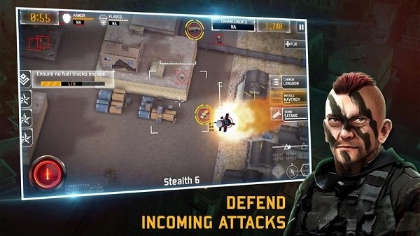 3、控制你的拉风炫酷无人机,配备最好的武器炮弹,将敌人一网打尽统统铲除