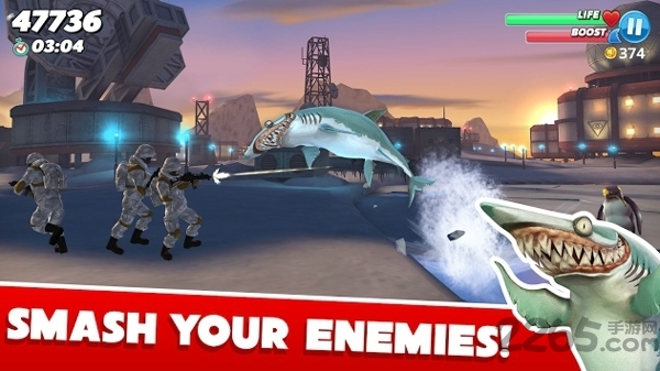 在竞争激烈的海洋中,饥饿鲨世界国际服玩家需要操作一只小鲨鱼逐渐成长为一只体型巨大、性格凶悍的深海巨鲨。巨鲨想要成为深海之王,就需要不断进食补充体力,各种鱼类、海鸟、螃蟹、人类都会成为食物,甚至大帆船等都能一口吞掉,美味珍馐一次尝个遍!鲨鱼玩改装,从此无敌手。鱼雷导弹变路人,海陆空任你畅游!别以为鲨鱼势不可挡就可以横行霸道了,游戏困难重重,还有水雷、水母等宿敌的存在,稍不留神就会搭上小命!挑战无处不在 ,为了进化一路肆虐狂杀,真3D技术渲染的游戏背景极具感官效果,破损的沉船、诡谲的洞窟、热闹的海滩、海中畅游的各种鱼类,从阳光明媚的阳光沙滩到幽暗寂静的神秘海底,更加真实的狂鲨世界尽现眼底。灰鲭鲨,锤头鲨,虎鲨大白鲨等各色鲨鱼造型霸气侧漏,撕咬食物的动作和效果撼人心魄,贯穿游戏始终刺激你的神经尽享冒险乐趣。