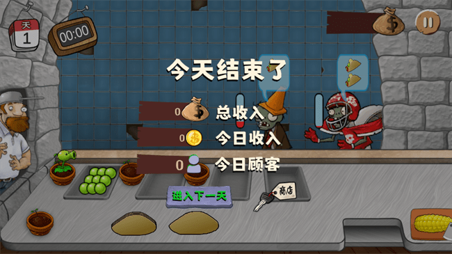 4.僵尸越来越多,解锁新植物,解锁超多食材制作玉米卷饼、沙威玛。
