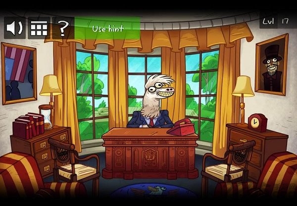 史上最坑爹的美国历险记Troll Face Quest USA Adventure是款魔性十足的解谜游戏,在这款游戏中你将要来到美国这个国家,这里涉及了美国总统和一些坚不可摧的超级英雄,游戏中点击屏幕完成你的探索,你需要去利用自己的侦探技能来解决游戏中的难题。
