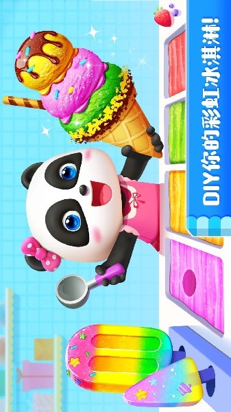 在小熊猫的冰淇淋店里,你可以随心所欲地制作!选择原料并制作您风格的冰淇淋,设计特殊而可爱的冰淇淋棒形状!