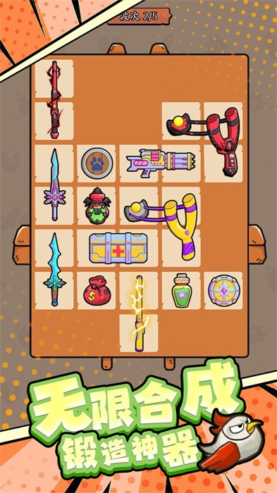 3、游戏背包空间有限,玩家需要在有限的空间里,不断地合成武器,对抗敌人。