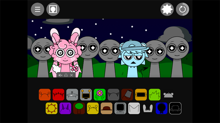 节奏盒子sprunki黑夜模式mod提供了白天、黑夜两大模式,玩家可自主切换。通过自主的音乐搭配即可创作出独一无二的歌曲,流畅且简单的操作体验带来了极佳游戏快感,玩家可随时参与其中畅享这一精彩音乐挑战。