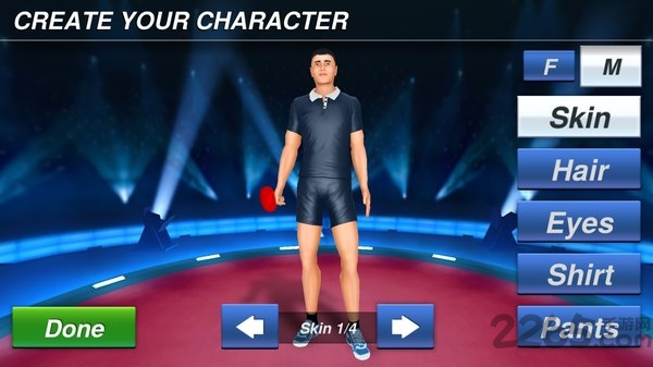 模拟乒乓球体育游戏,采用U3D引擎打造,高度还原正规的乒乓球比赛场景,每场比赛都对决都表现得扣人心弦!高清的游戏画面,出色的击球感和超强的竞技体验给人以最真实的比赛体验,游戏中还可以自定义运动员的外貌,肤色,国籍等,让他代表你出战和对手展开一场激烈的乒乓球厮杀,并赢得比赛的胜利。