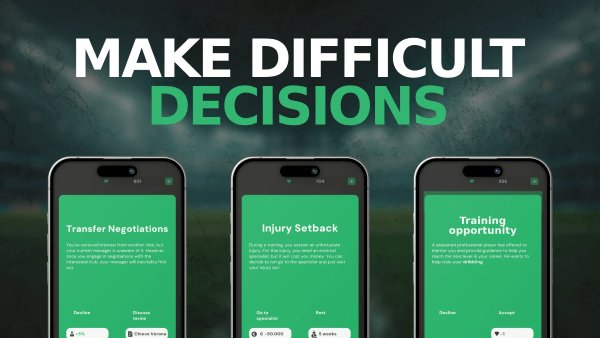 在你的足球生涯中,你将不得不做出改变职业生涯的艰难决定。从通过否认转会谣言来改善经理与你的关系,到参加慈善比赛并捐赠以获得宝石来升级你的足球运动员技能。