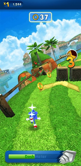它是跑酷游戏。沿袭了经典的索尼克造型,一路飞奔,收集金环,躲避障碍等。索尼克将以招牌式的冲刺动作,闯过各种关卡,最终到达终点。这是完全的跑酷化的作品,虽然少了原版的《刺猬索尼克》那样多的经典动作,但是熟悉的角色依然会让大家感到快乐,怎会有人不喜欢索尼克呢?