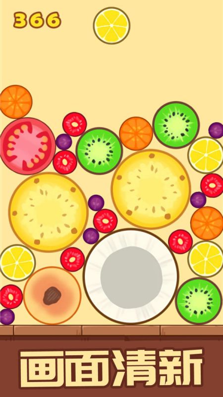 2.游戏内容充实,水果类型丰富,每种水果都有独特的体积大小。