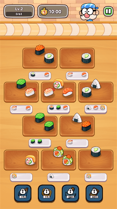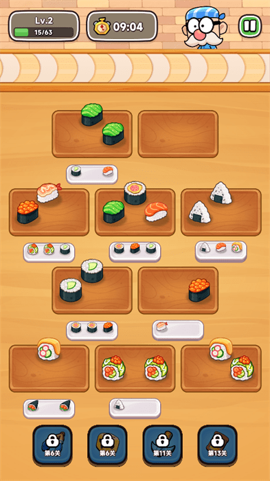 寿司时间安卓版在卡通的萌趣画面中去体验合并消除乐趣,在游戏中玩家通过将三个相同类型的寿司在规定时间内进行组合即可消除,随着关卡推进局内提供的寿司数量也将会越来越多,且款式也是越来越复杂,考验你眼力的时刻到了。