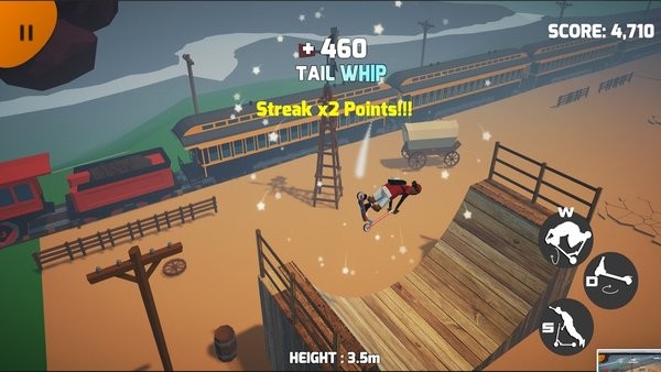 使用你的自由式技巧在半管上跳得更高,炫耀你的滑板车游戏翻转和半管技巧,并做大量惊人的技巧。