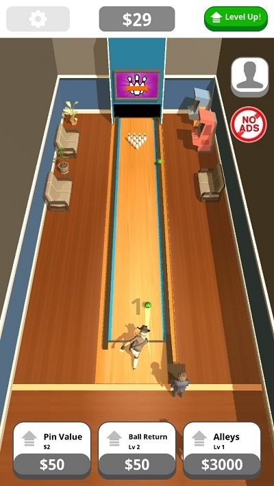 4、优良的游戏画面,控制保龄球移动,掌握好方向,点击屏幕即可完成任务,加强力度