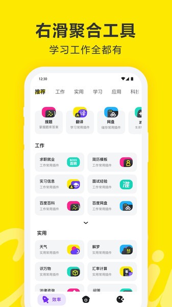 左右滑动,探索不同内容,效率/娱乐随意切换。