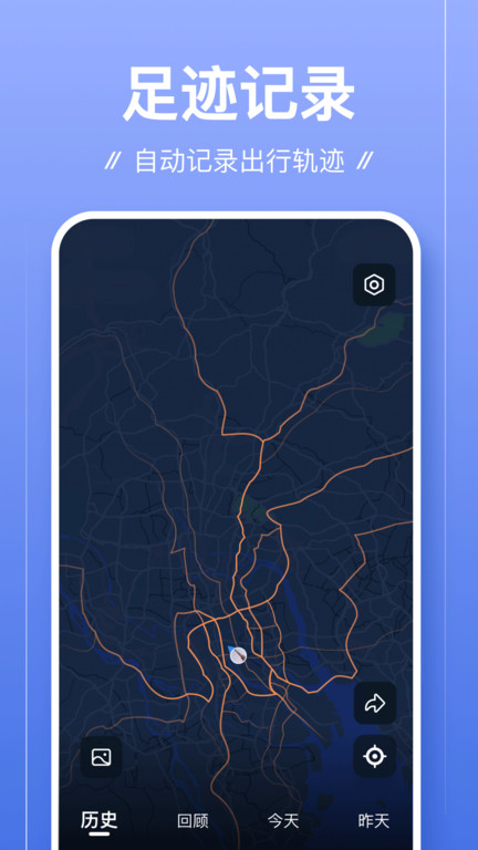 足迹app安卓版是一款轨迹地图软件,让大家更好的进行定位,知晓家人朋友等安全情况,非常适合大家出去夜跑啊参加活动的时候使用,能够为你记录你的行走轨迹,保存数据供朋友查阅,可以分享你的定位等等,欢迎各位感兴趣的朋友们下载使用。