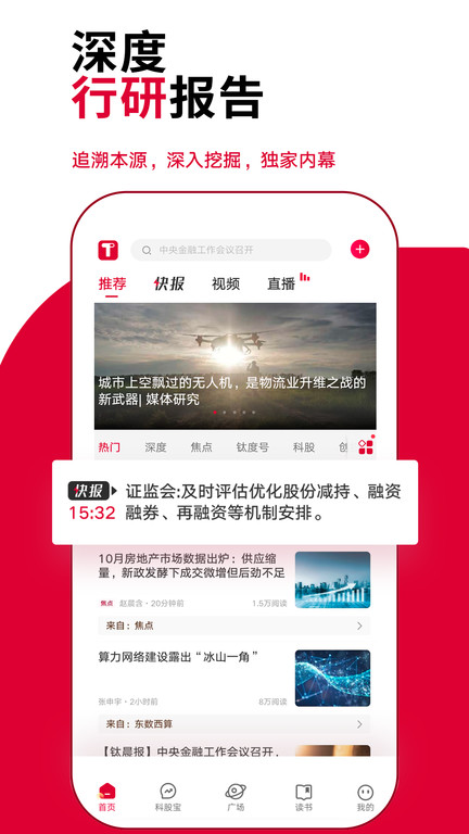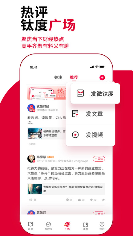 3.钛度广场新增科股宝播报、机会情报、涨跌停揭秘、钛媒体独家等犀利资讯见闻;