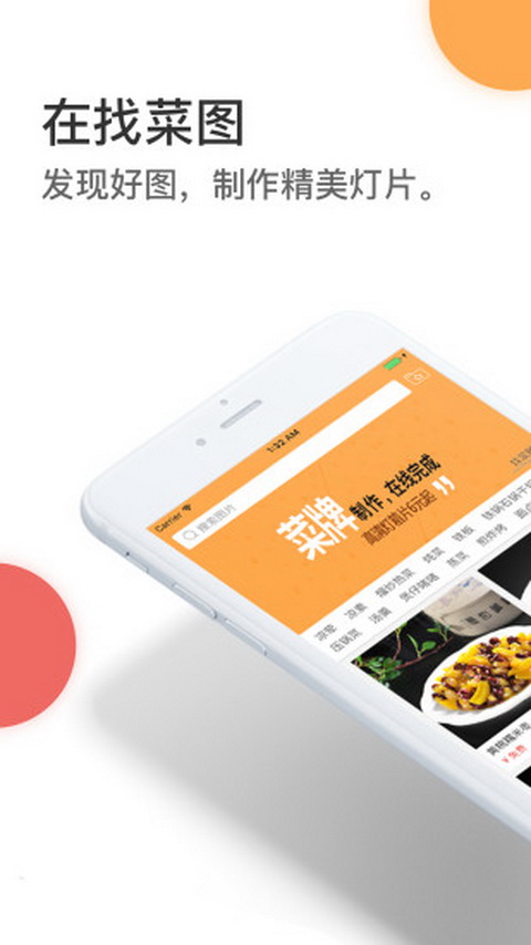 找菜图app一款菜谱制作软件,用户可以通过软件进行尺寸大小设计,优化展示,后台管理等等,使用更加的流畅,用户点菜浏览将会非常的方便,感兴趣的话就快来下载使用吧。