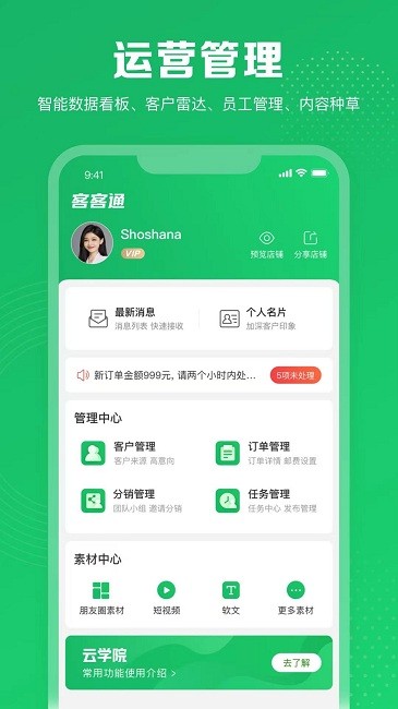 客客通app是一个很实用的营销推广软件,软件中有很多好用的办公功能,可以帮助用户很好的去进行营销推广,可以帮助企业提高销售额。可以随时查看推广数据的客户数量,从而全面掌握流量变现的具体数据,这里还有数字化运营功能可以体验。