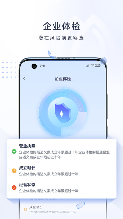 2.主要提供企业信息查询功能,不涉及股票、证券信息相关功能。