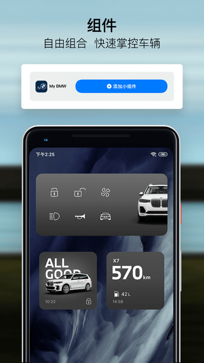 ·新增安卓小组件功能:用户可添加My BMW App所支持的远程服务为小组件,并在主屏幕点击对应远程按钮或找车按钮后打开My BMW App快速触发对应功能