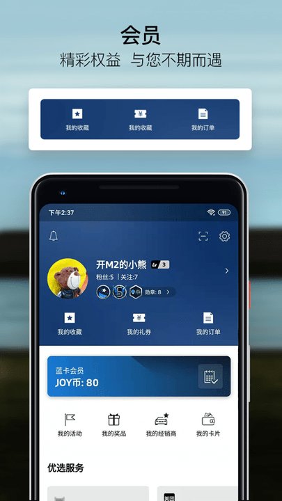 ·个人:管理和查看您的个人信息主页,积累My BMW Joy币,享受精美礼品及服务礼券兑换