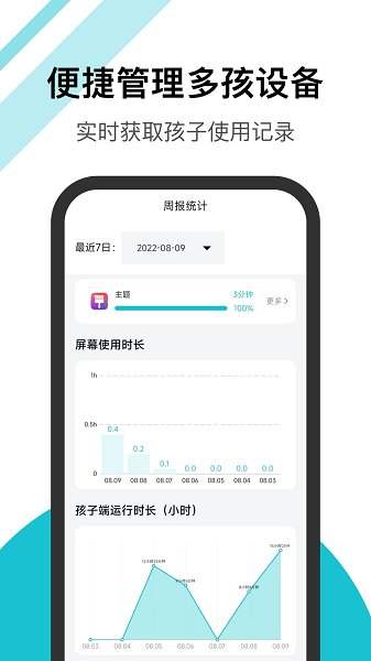 使用报告:记录孩子使用手机的报告,包括应用活动记录和手机使用时间,通过数据更好地了解孩子。