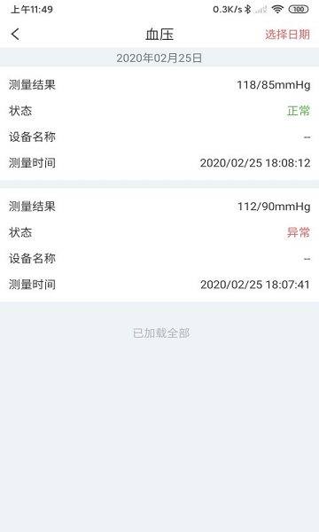 2、当您关爱人通过夕阳无忧设备测量后并且成功上传的,您在亲情端就能关注到他们的测量数据,多一份关爱,多一分关心。