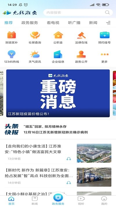 无线淮安app官方版带来新闻资讯以及娱乐八卦、科技等的新闻,无需注册就能观看新闻,省流量,还有淮安百姓的身边事,为你带来实用的信息以及便民服务。喜欢的朋友就来下载体验吧!