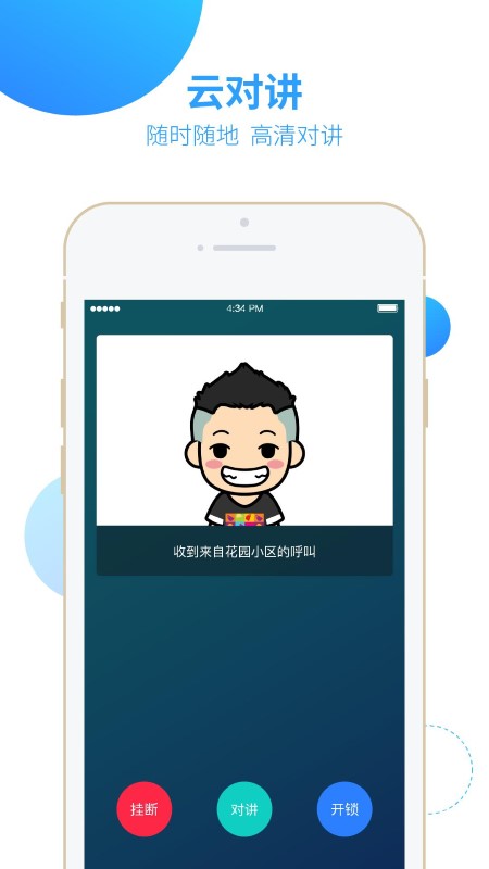 门铃功能:在装有智之屋门口机的社区,访客在门口机上呼叫业主的房号,用户可以使用智之屋app与访客进行视频对话,确认访客身份后,在app上进行远程开锁。