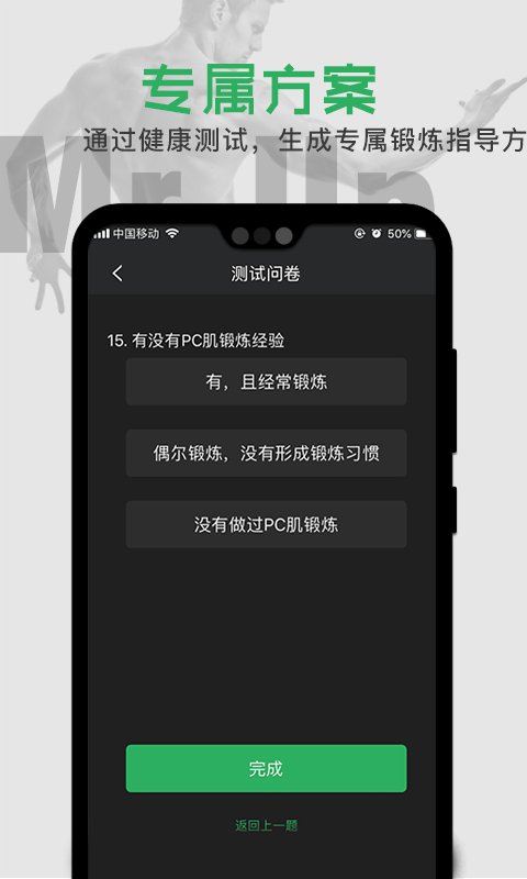 Mr.Up app是一个男性性健康管理app,以PC肌锻炼指导为核心,辅以两性健康知识宣讲,充分提升男性性体验.