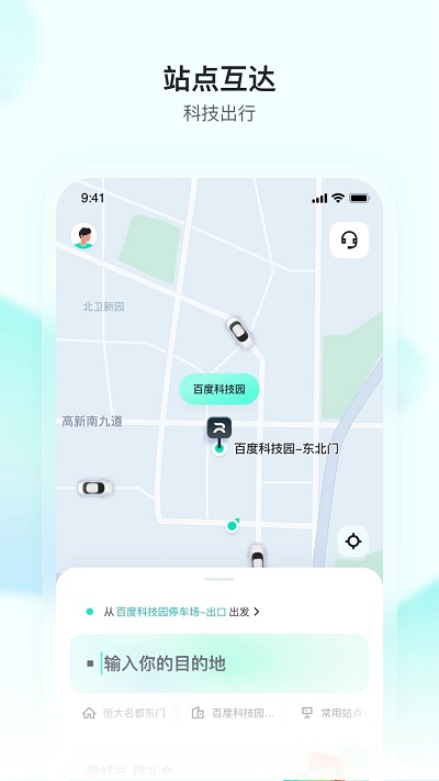 Apollo GO提供一键叫车、人脸识别、步行站点导航等自动驾驶出租车服务,页面简洁、操作简单,为乘客带来前沿自动驾驶科技的优质体验!