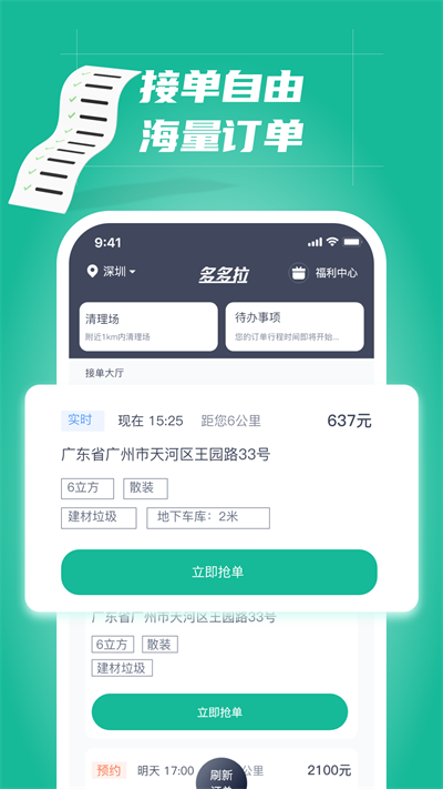 多多拉车主是接单服务软件,让你可以告别靠关系接货的时代,在线了解每一笔订单的详情,各种订单实时更新,用户可以按照自己的时间接单,可以帮助司机师傅提升收益。