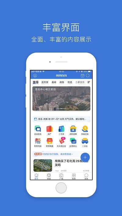 茂名在线手机版是款生活资讯服务软件,专为茂名市区人民打造,汇集了当地最新的各种新闻资讯,让你第一手就能了解重大事件,每天只能推送各种优惠商家活动详情,为你的生活提供更便捷的服务,有需要的小伙伴快来下载体验吧。