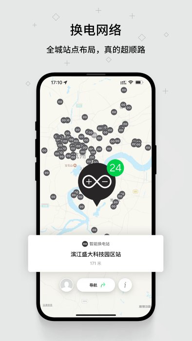 1.一键匹配最近的换电站,无需预约,即可随时更换满格的三元锂电池