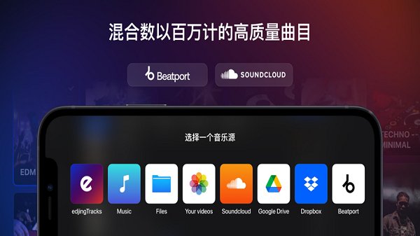 手机打碟软件edjing mix是功能十分强大的DJ音乐手机工具软件,edjingMix中文版专为喜欢音乐喜欢DJ的你量身打造,随时随地嗨起来,与好友在家开party,还能将你录制的音乐作品分享到社交软件,快来点击下载体验一下吧!