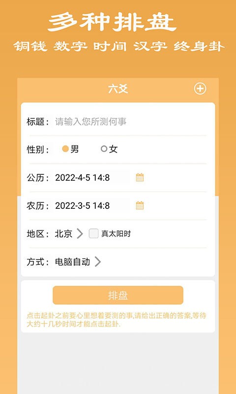 最专业的免费周易算命排盘工具。在线起卦,今日运势,感情运势,姻缘占卜,点击可测。随时随地保存。九种常用排盘方式,随心选择。一键搜索分享同类案例。改善爱情桃花运势,提升事业气场财运。为你精心推荐开运好物,水逆改运招财挡灾。送自己送亲朋好友,是不可或缺的趋吉避凶好帮手。