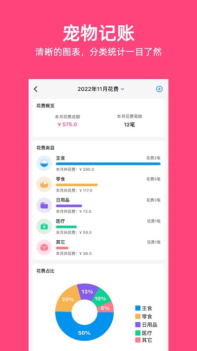 2、涵盖铲运员日常生活中常用的记录项目,简单易用的宠物记录APP。