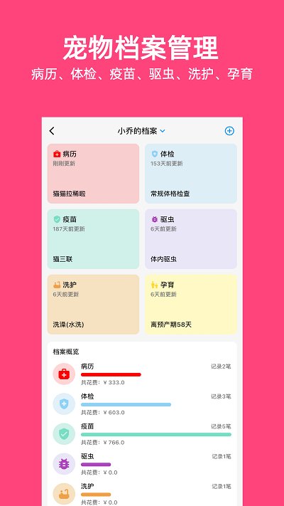 3、全方位管理您的猫狗宠物,有了铲屎官的日常,您还担心什么?