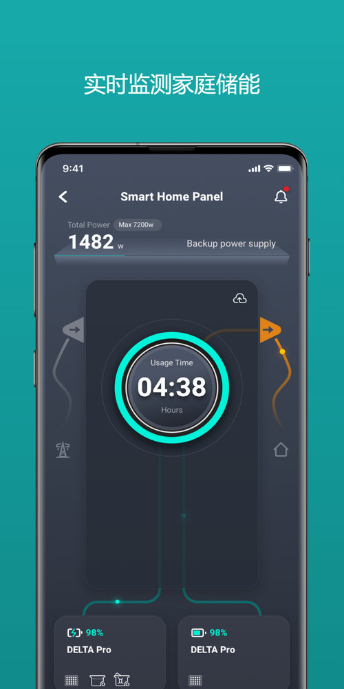 ecoflow,可以实时展示所有的端口状态,监测太阳能充电的趋势,调节充电速度,设置电池的充放电的范围以更好保护您的电池.更多的功能等待您的探索与发现!