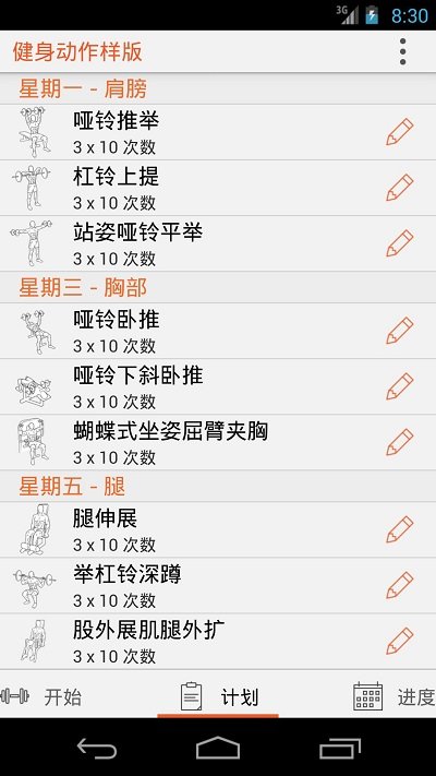 1、在体重,重复次数,日期和笔记中添加日志到练习中,使用滑动手势输入日志的快速导航,卡路里计数锻炼和休息计时器;