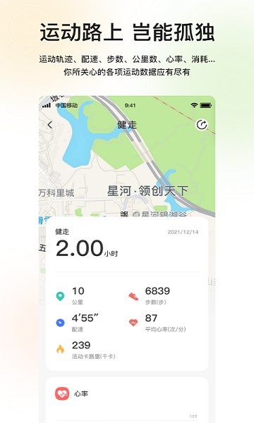 走路、跑步、骑行运动记录:低功耗计步,跑步轨迹、心率、步频、配速等运动数据一目了然。