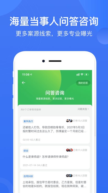 ③真实海量执业律师实时在线,极速响应,支持图文咨询、电话咨询,用户提交问题,律师抢单,1对1解答,价格清晰透明。