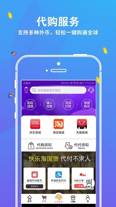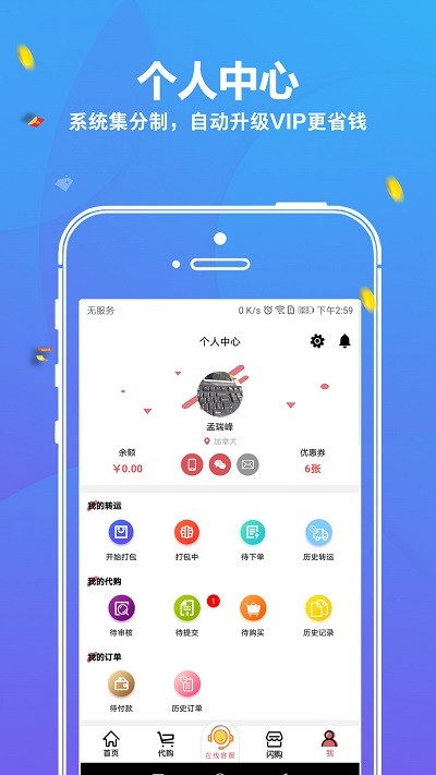 以人性化、便捷为服务宗旨,提供由国内至海外物品的仓储保管服务,以优惠的物流价格、追踪物流为服务特色,为用户提供优质的海外转运服务,让代购服务的距离只是一个APP,