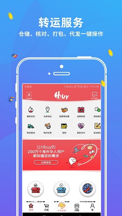 华人hbuy软件是一款有国内外商品的app,你可以在里面购买国外的商品,app就提供转运服务,以最优惠的物流价格为你服务,还有海内外的各种大品牌内部还优惠券等着你的到来,感兴趣的可以下载app,领取新人物流优惠活动,