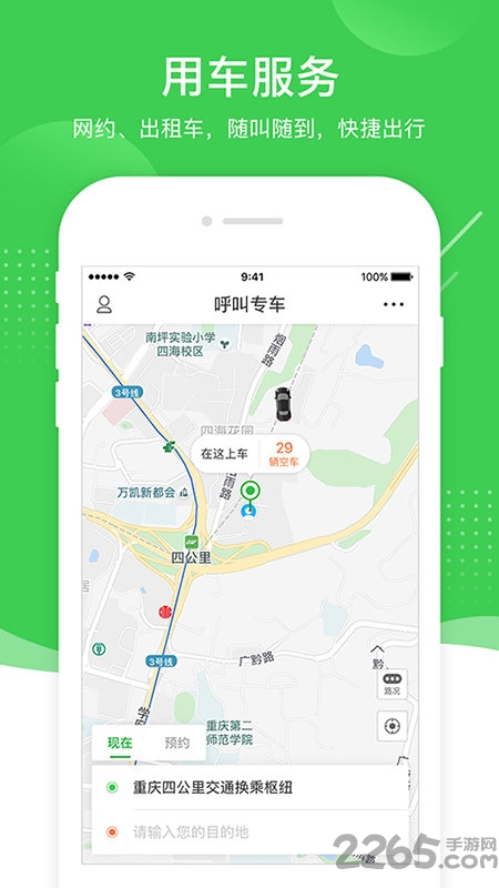 1、只有你想不到,没有做不到。目前测试版支持网召出租车,为重庆人民提供新的选择,不出门实现一键打车。我们将提供最好的出行服务,不拒载,不绕路,实现“买票不排队,出门不打挤”。