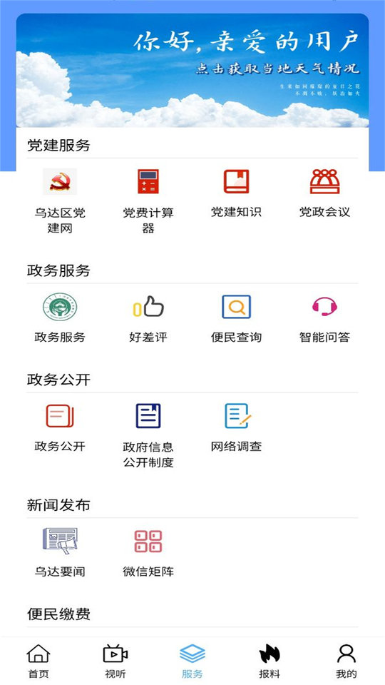 魅力乌达app是一款新闻融媒体软件,软件为用户提供最便捷的新闻资讯服务,通过软件用户可以查看各种新闻资讯内容,帮助你更方便的了解本地各种新闻内容,让你走到哪里都能看新闻,感兴趣的朋友不要错过了,快来下载看看吧!