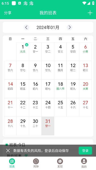 轮班日历软件是一款专为轮班倒班的用户而打造的日历软件,软件能够帮你智能的制定各种工作日期,并提供贴心的闹钟提醒,班次查询等功能.感兴趣的朋友可以来下载.
