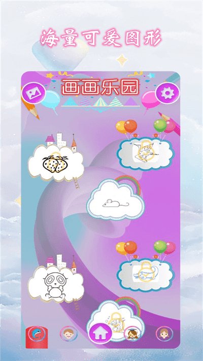 儿童画画涂色本app是教小孩子画画的软件,有着丰富的绘画工具可以使用,孩子们可以在软件中发挥自己的脑洞进行绘画,各种不同颜色的画笔全都可以尝试使用,海量可爱的图形可以选择,感兴趣的用户快来下载使用吧。