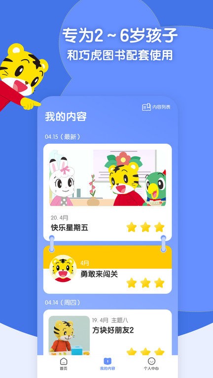 巧虎缤纷世界app是一款能够为二到六岁儿童打造的全新启蒙教学软件,在这里能够与图书进行配套教学,能够从多个方面进行综合培养,软件中随时都可以学习的, 拥有故事、游戏以及音乐等丰富内容,有需要的话就来下载试试吧!