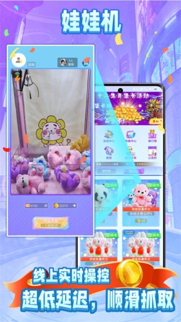 ★夹取快速:我们有先进的直播技术,给您无延迟体验。各种场景拟真呈现,推娃娃赢金币,真实街机,夹娃娃,娃娃机。