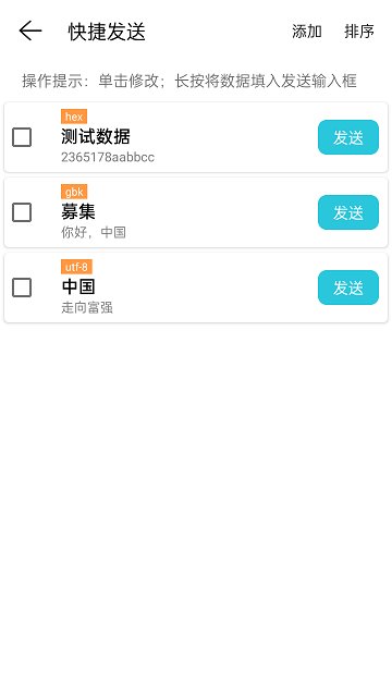 2. 支持添加自定义数据为快捷按钮,一点即可发送。