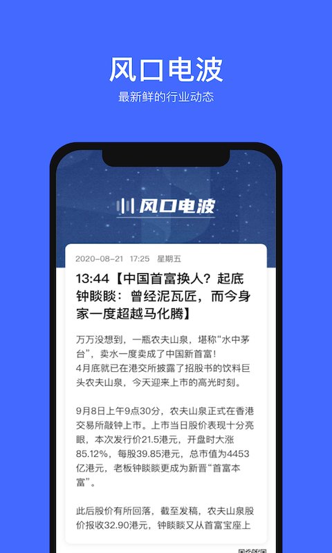 风口财经软件是一个专注财经领域的新闻客户端,以新闻传播为主,激发阅读兴趣、满足服务需求,在精不在多、个个能出圈.设置电波、要闻、财女、原创等个性频道,建设一个强势财经2265新媒体平台.