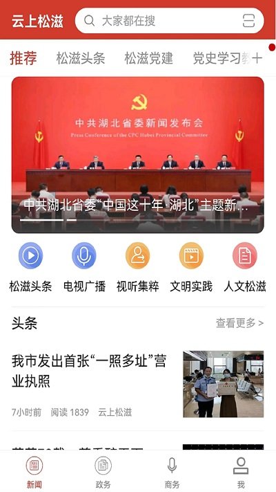 4、新闻:在这里有着多样的新闻等你阅读、不管是松滋本地的新闻,还是国内外的内容你都能看到